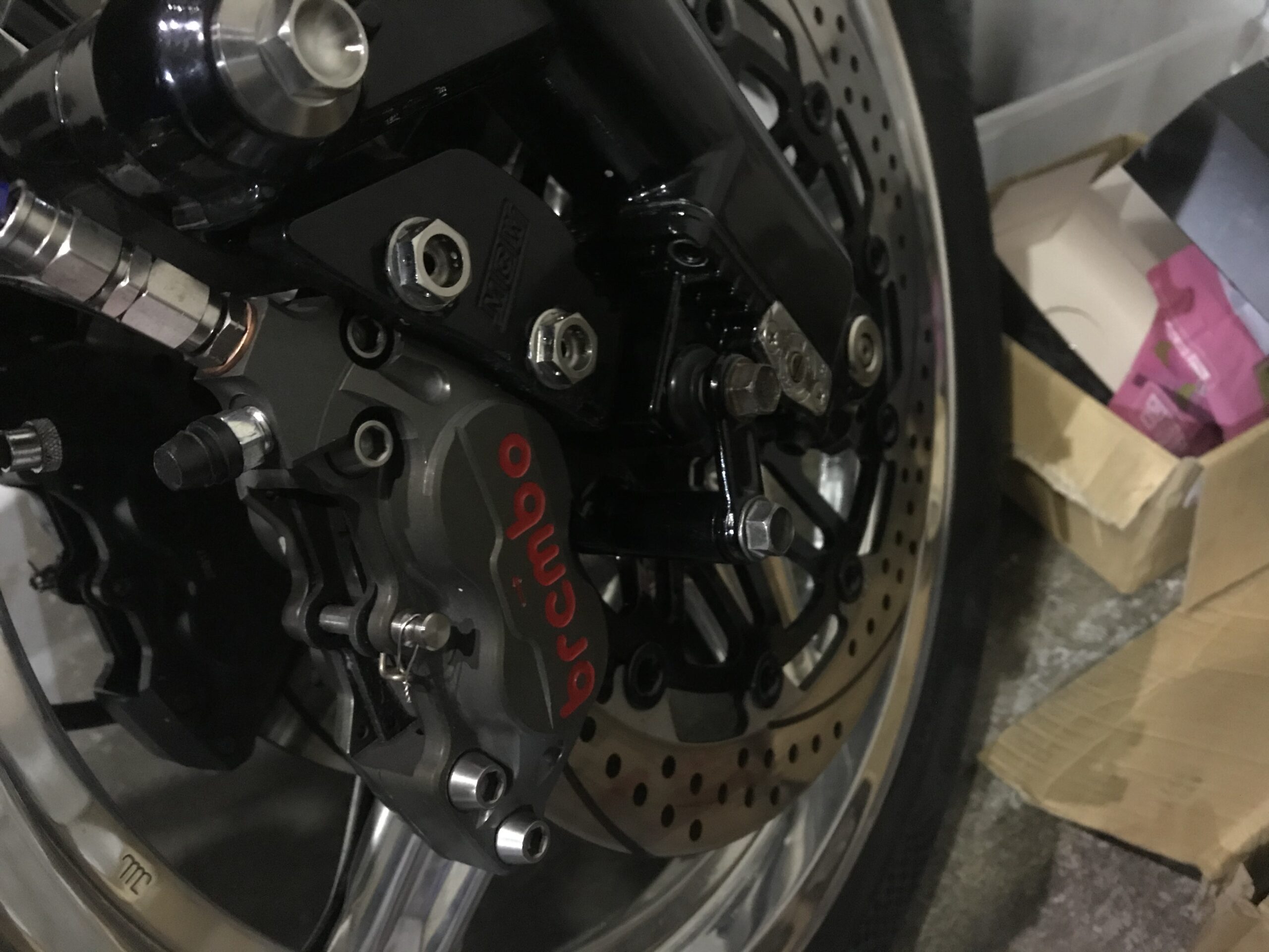 CBX1000の年代のバイクはアキシャルキャリパーなので大仕事です。