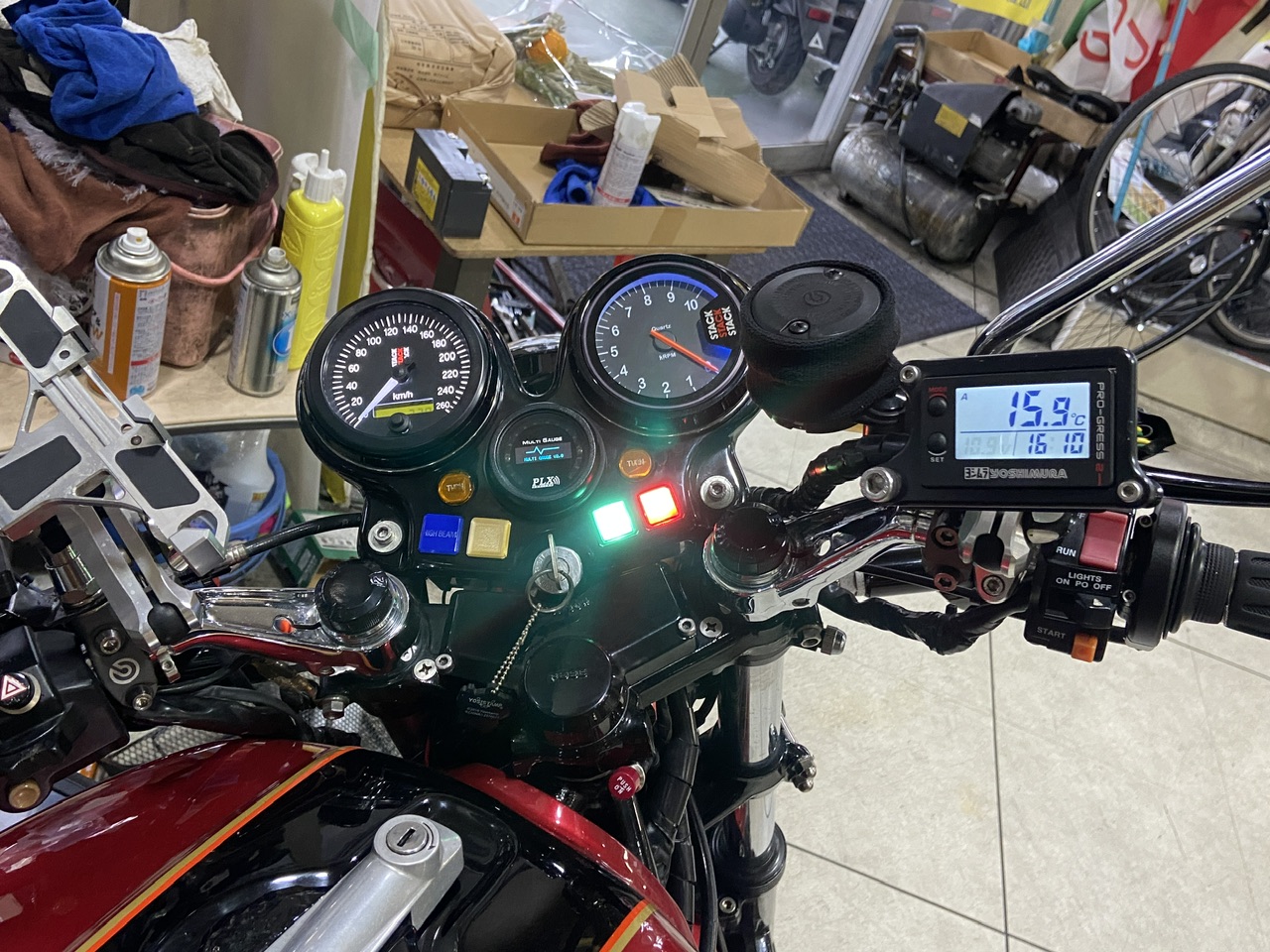 私のCBX1000はバイク屋さんのガレージを間借りして保管しております。