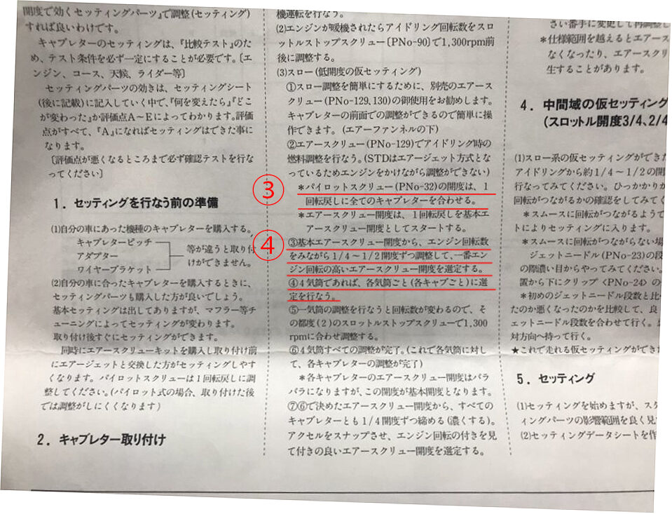 このあたりからFCRセッティングマニュアルとやり方が違います。
